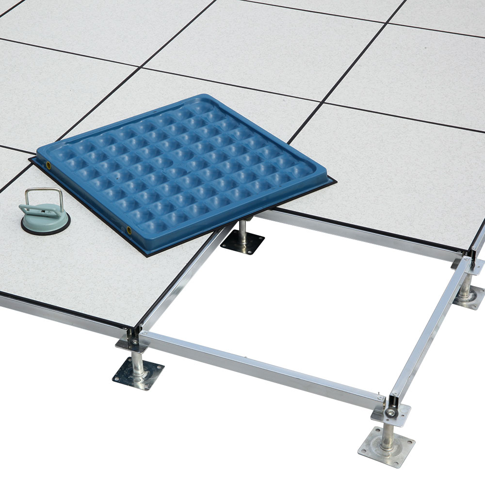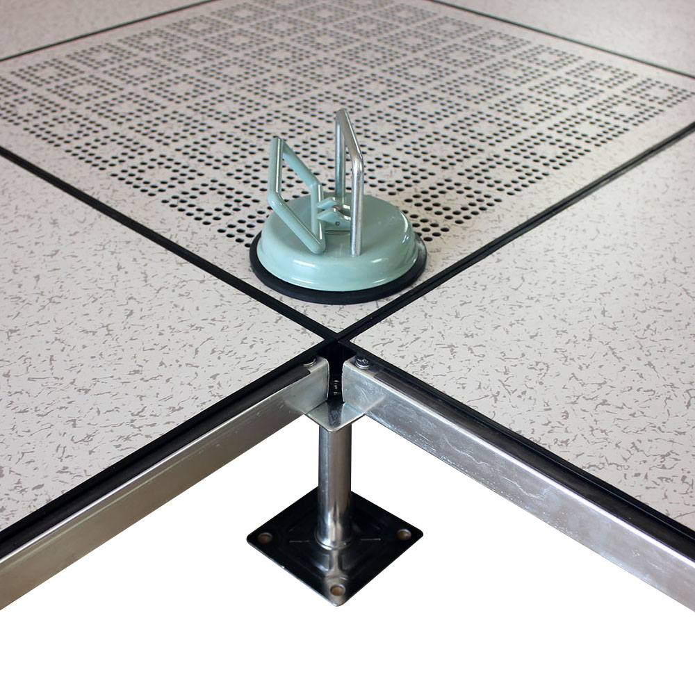 全鋼防靜電地板為全鋼組件,分有邊、無邊、微邊(三種邊處理方式)。底面采用SPCC深沖冷軋板拉伸成型鋼板厚度(0.4~1.5mm),球窩狀結構,增加地板的機械荷載強度。面板采用硬質SPCC鋼板(0.5~2.0mm),上下經(jīng)過點焊焊接成型,切邊沖孔后,經(jīng)防銹處理,環(huán)氧樹脂粉末靜電噴涂后,中間填充發(fā)泡水泥(可以根據(jù)客戶需求發(fā)泡不同重量),再經(jīng)過日曬養(yǎng)護后形成穩(wěn)定的承載結構。地板上表層粘貼防火板(HPL)/復合PVC/ 通體PVC/陶瓷地磚等不同材質的裝飾表層,達到產(chǎn)品花色的多樣性、可以根據(jù)客戶需求個性化定制產(chǎn)品。搭配聯(lián)網(wǎng)支架、支架、螺釘組裝后,定位聯(lián)接更加準確、精度可靠。