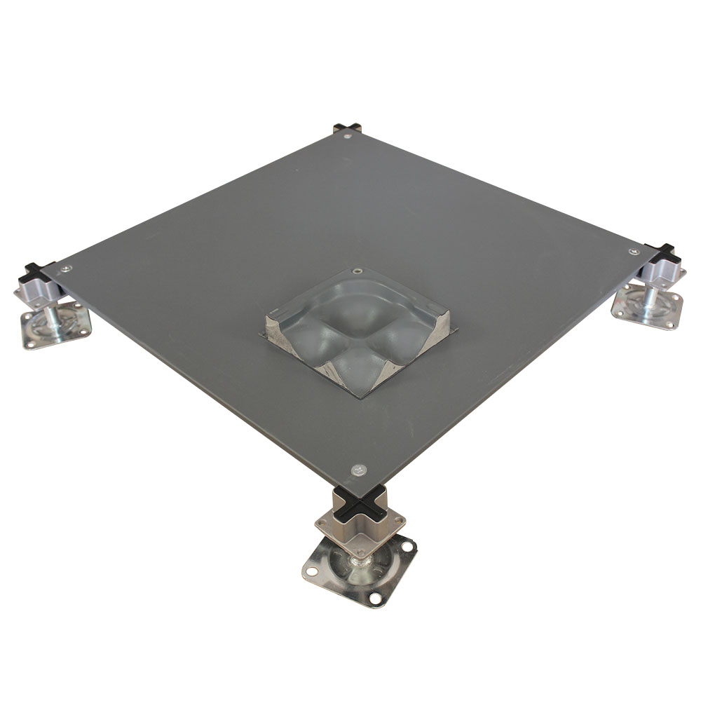 OA500網(wǎng)絡(luò)架空地板采用鋼板經(jīng)拉伸成型、點焊、外表經(jīng)防銹處理后進行靜電粉末噴涂處理,內(nèi)腔填充發(fā)泡水泥,四角帶有角鎖孔。支架為冷軋帶鋼鋼板及鑄鋁合金鋁頭組成,可調(diào)節(jié)升降高度。由于智能化樓宇配線復(fù)雜,功能齊全,故出線口較多。